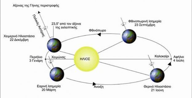 Αντίθετα, στο χειμερινό ηλιοστάσιο, ο Βόρειος Πόλος βρίσκεται στο πιο απομακρυσμένο σημείο από τον Ήλιο.